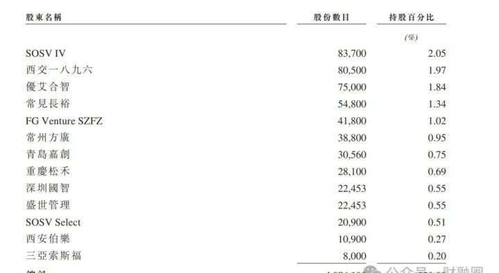 其他重要投资方包括海纳华(持股11.51%)、蓝驰创投(持股7.26%)、真格基金(通过真格景源持股4.33%)等。此外,软银亚洲、IDG资本等也进入了公司股东名单。其中,蓝驰创投的联属公司蓝驰实体截至2025年6月30日的投资组合价值超过50亿港元,除了优艾智合,蓝驰实体投资公司还包括理想汽车、青云科技等。